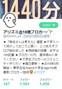 ㉒ アリズミ@18歳ブロガー/ 🌱まずは100投稿 さん